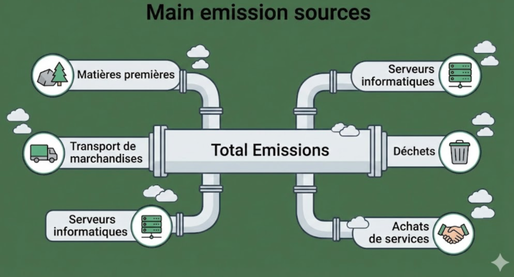 Les émissions d’une entreprise ne se limitent pas à la consommation d’électricité ou aux déplacements professionnels. Selon les secteurs, les postes les plus importants sont souvent moins visibles : matières premières, transport des marchandises, serveurs informatiques, déchets, ou encore achats de services. On distingue généralement trois niveaux : les émissions directes (liées à l’activité même), les émissions indirectes liées à l’énergie consommée, et celles, beaucoup plus vastes, liées aux achats ou à l’utilisation des produits. Comprendre cette cartographie permet de prioriser les actions et d’éviter de se concentrer uniquement sur des postes secondaires.
